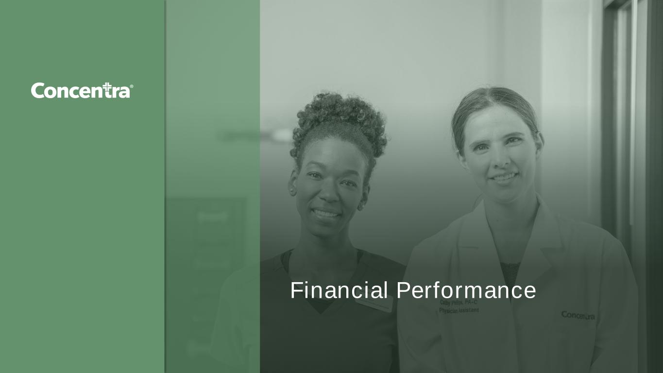 3 Forward-Looking Statements This presentation contains forward-looking statements that express Concentra Group Holdings Parent, Inc.'s ("Concentra," the "Company," "we" or "our") current opinions, expectations, beliefs, plans, objectives, assumptions or projections regarding future events or future results that include, but are not limited to, financial guidance and other projections and forecasts. Forward looking statements include statements that are not historical facts and can be identified by terms such as “anticipate,” “believe,” “could,” “estimate,” “expect,” “intend,” “may,” “plan,” “potential,” “predict,” “preliminary,” “project,” “seek,” “should,” “underpin,” “will,” “would” or similar expressions and the negatives of those terms. These forward- looking statements involve a number of risks, uncertainties (some of which are beyond the Company’s control) or other assumptions that may cause actual results or performance to be materially different from those expressed or implied by these forward-looking statements. These risks and uncertainties include, but are not limited to, those factors described in the Company’s filings with the Securities and Exchange Commission (“SEC”), including those under “Risk Factors” therein. Should one or more of these risks or uncertainties materialize, or should any of the assumptions prove incorrect, actual results may vary in material respects from those projected in these forward-looking statements. Actual results may differ materially from these expectations due to changes in global, regional or local economic, business, competitive, market, regulatory and other factors, many of which are beyond the Company’s control. Any forward looking statements made by the Company in this presentation speak only as of the date of this presentation and are expressly qualified in their entirety by the cautionary statements included in this presentation. Factors or events that could cause the Company’s actual results to differ may emerge from time to time, and it is not possible for the Company to predict all of them. The Company may not actually achieve the plans, intentions or expectations disclosed in its forward looking statements and you should not place undue reliance on its forward looking statements. The Company’s forward looking statements do not reflect the potential impact of any future acquisitions, mergers, dispositions, joint ventures, investments or other strategic transactions it may make. The Company does not undertake any obligation to update or revise any forward-looking statements, whether as a result of new information, future events or otherwise, except as may be required under applicable securities laws. Use of Non-GAAP Financial Information In order to provide investors with greater insight, promote transparency and allow for a more comprehensive understanding of the information used by management in its financial and operational decision making, the Company supplements its condensed consolidated financial statements presented on a GAAP basis herein with certain non-GAAP financial information, including reconciliations of these non-GAAP measures to their most directly comparable available GAAP measures, which are included in this presentation, as well as in the Company’s quarterly financial press releases and related Form 8-K filings with the SEC. This information can be accessed for free by visiting www.concentra.com or www.sec.gov. We believe that the presentation of Adjusted EBITDA, Adjusted EBITDA margin, Adjusted Net Income Attributable to the Company, Free Cash Flow and FCF Conversion, as defined herein, are important to investors because Adjusted EBITDA, Adjusted EBITDA margin, Adjusted Net Income Attributable to the Company, Free Cash Flow and FCF Conversion are commonly used as an analytical indicator of performance by investors within the healthcare industry. Adjusted EBITDA, Adjusted EBITDA margin, Adjusted Net Income Attributable to the Company, Free Cash Flow and FCF Conversion are used by management to evaluate financial performance of, and determine resource allocation for, each of our operating segments. However, Adjusted EBITDA, Adjusted EBITDA margin, Adjusted Net Income Attributable to the Company, Free Cash Flow and FCF Conversion are not measures of financial performance under U.S. GAAP. Items excluded from Adjusted EBITDA, Adjusted EBITDA margin, Adjusted Net Income Attributable to the Company, Free Cash Flow and FCF Conversion are significant components in understanding and assessing financial performance. Adjusted EBITDA, Adjusted EBITDA margin, Adjusted Net Income Attributable to the Company, Free Cash Flow and FCF Conversion should not be considered in isolation, or as an alternative to, or substitute for, net income, net income margin, income from operations, cash flows generated by operations, investing or financing activities, or other financial statement data presented in the consolidated financial statements as indicators of financial performance or liquidity. Because Adjusted EBITDA, Adjusted EBITDA margin, Adjusted Net Income Attributable to the Company, Free Cash Flow and FCF Conversion are not measurements determined in accordance with U.S. GAAP and are thus susceptible to varying definitions, Adjusted EBITDA, Adjusted EBITDA margin, Adjusted Net Income Attributable to the Company, Free Cash Flow and FCF Conversion as presented may not be comparable to other similarly titled measures of other companies. We define Adjusted EBITDA as earnings excluding interest, income taxes, depreciation and amortization, gain (loss) on early retirement of debt, stock compensation expense, separation transaction costs, Nova Medical Centers ("Nova") and Onsite Innovations, LLC ("Pivot Onsite Innovations") acquisition costs, gain (loss) on sale of businesses, and equity in earnings (losses) of unconsolidated subsidiaries. We define Adj