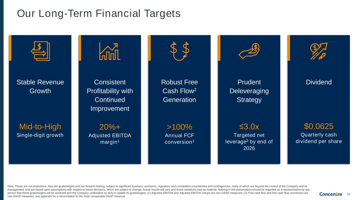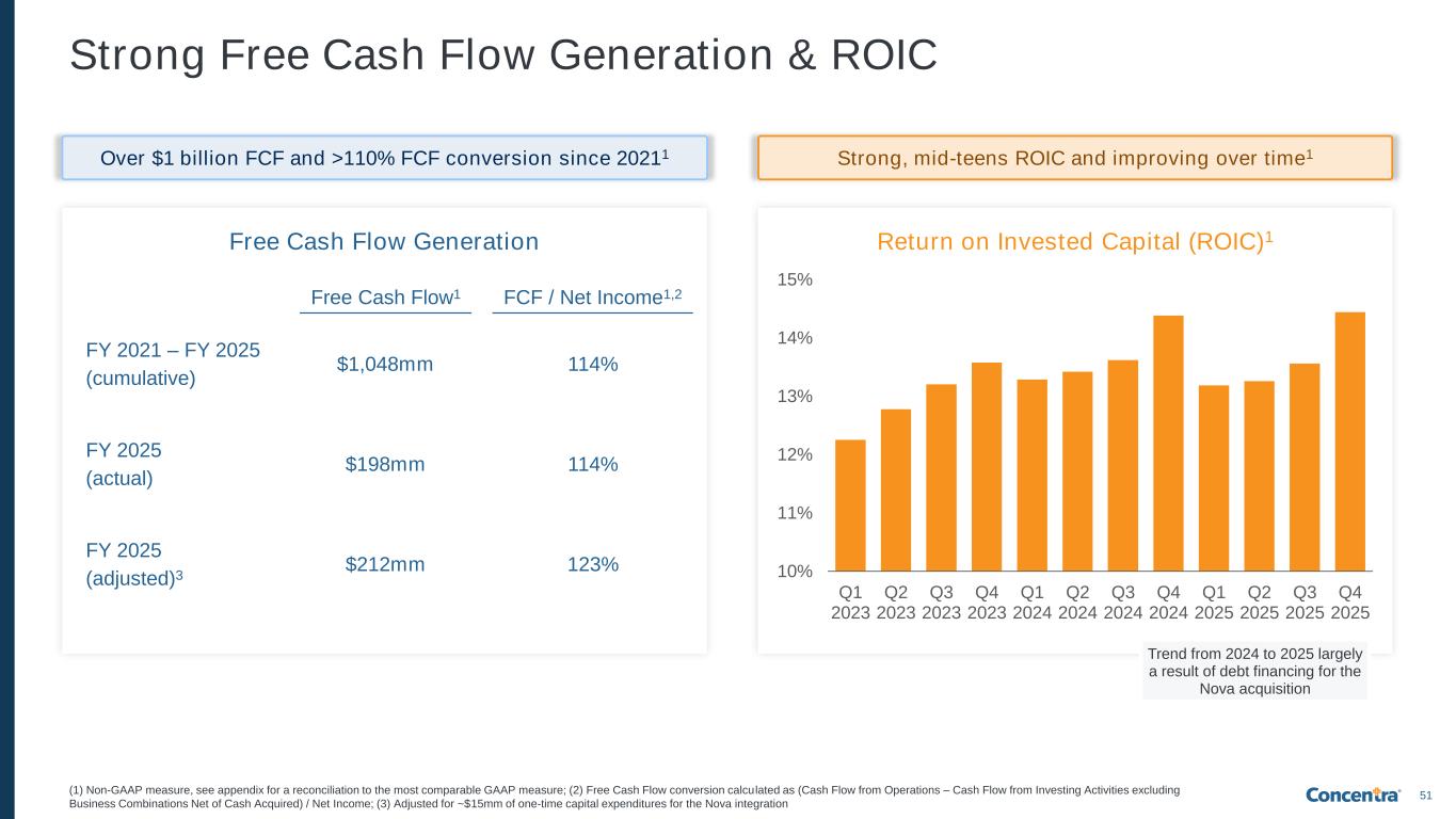 50 Consistent Profitability with Continued Improvement 20%+ Adjusted EBITDA margin1 Robust Free Cash Flow2 Generation >100% Annual FCF conversion2 Prudent Deleveraging Strategy ≤3.0x Targeted net leverage3 by end of 2026 Stable Revenue Growth Mid-to-High Single-digit growth Dividend $0.0625 Quarterly cash dividend per share Note: These are not projections; they are goals/targets and are forward-looking, subject to significant business, economic, regulatory and competitive uncertainties and contingencies, many of which are beyond the control of the Company and its management, and are based upon assumptions with respect to future decisions, which are subject to change. Actual results will vary and those variations may be material. Nothing in this presentation should be regarded as a representation by any person that these goals/targets will be achieved and the Company undertakes no duty to update its goals/targets; (1) Adjusted EBITDA and Adjusted EBITDA margin are non-GAAP measures; (2) Free cash flow and free cash flow conversion are non-GAAP measures, see appendix for a reconciliation to the most comparable GAAP measure Our Long-Term Financial Targets